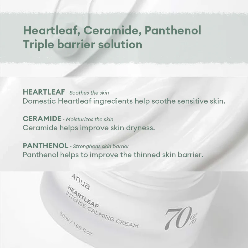 [Anua] Heartleaf 70% Intense Calming Cream 50ML is designed to soothe and calm sensitive skin.